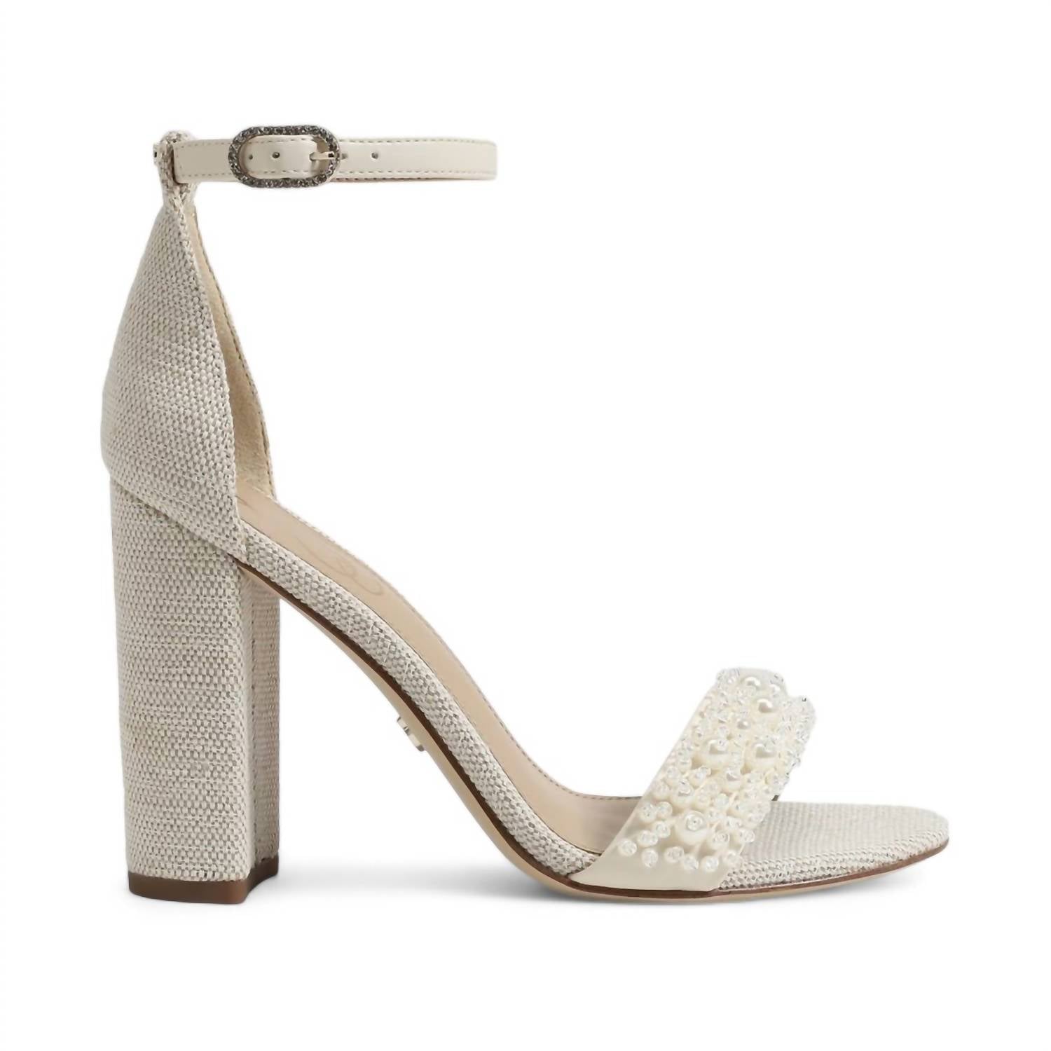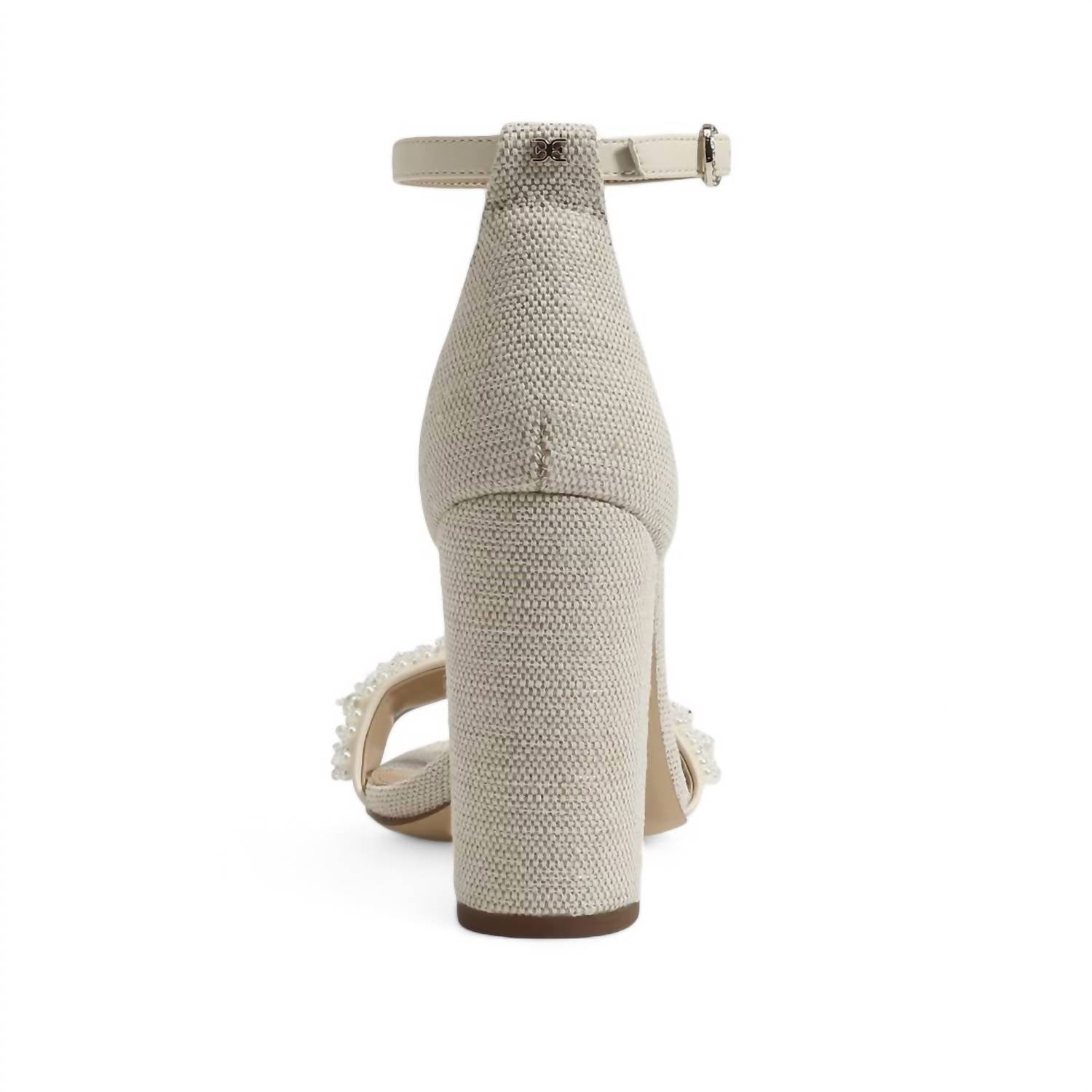 Clássico e charmoso, perfeito para usar o dia todo. Adoramos esta sandália. Esta sandália de salto apresenta um trabalho de contas intrincado, lindamente complementado por um salto escultural de 10 cm e uma tira no tornozelo. Confeccionada em uma combinação de couro, tecido e materiais sintéticos, esta sandália esbanja glamour e sofisticação. A palmilha sintética proporciona conforto e suporte, tornando-a perfeita para um look mais formal ou para adicionar um toque de elegância a qualquer look.