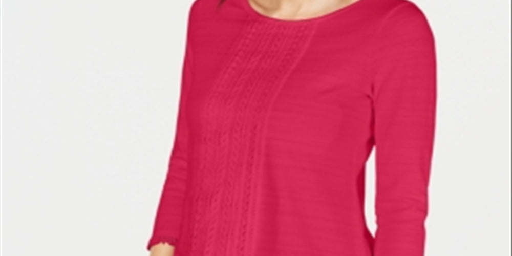 Um lindo painel de renda destaca a frente deste top Charter Club | feito em algodão macio com charmosas mangas 3/4 e acabamento em franjas | (Liquidação)