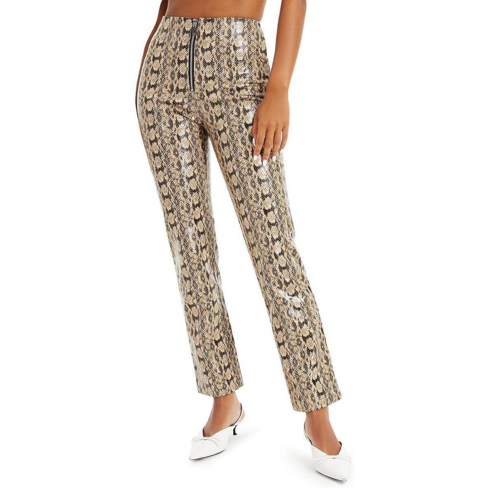 Esta calça justa, de cintura alta e imitação de pele de cobra da Danielle Bernstein tem um zíper frontal exposto. Danielle Bernstein, fundadora do blog de moda mundialmente renomado WeWoreWhat, apresenta uma nova linha de roupas com seu nome. A nova marca é inclusiva em termos de tamanho e acessível. Danielle cresceu fazendo compras em Long Island, Nova York, e sua nova linha é uma homenagem à sua infância.