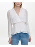 DKNY Top feminino de manga comprida com decote sobrepeliz e envoltório falso, branco, tamanho XS