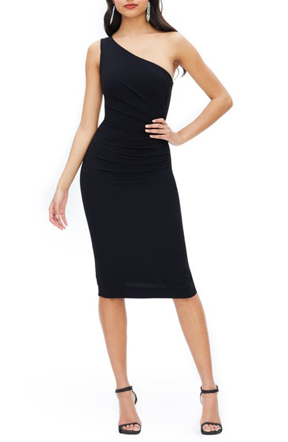 Vestido de crepe elástico Dress the Population Martine com um ombro só, tamanho X-Large