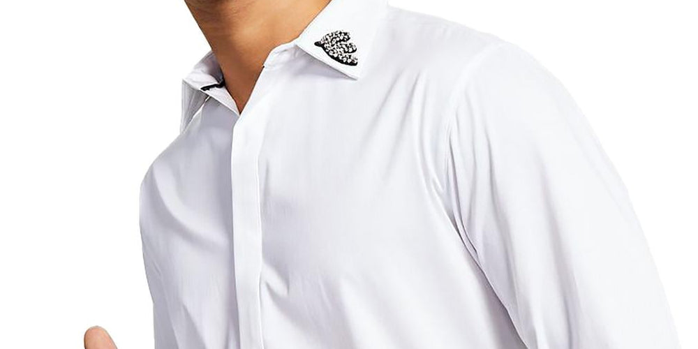 Camisa elástica com botões e detalhes embelezados da INC International Concepts para homens, branca, tamanho médio