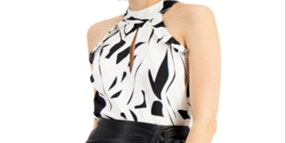 A INC International Concepts mantém seu visual atual com esta blusa estampada sem mangas | adornada com babados sedutores e um recorte frontal