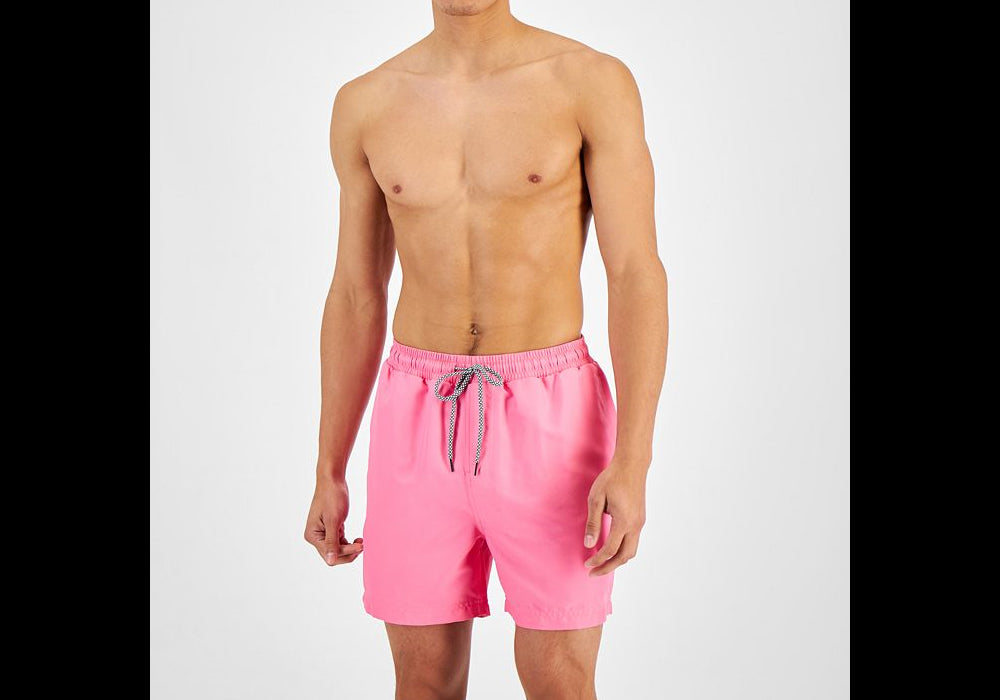 Clássico | confortável e perfeito para o seu próximo dia na piscina | este calção de banho da INC International Concepts® apresenta cós elástico com fecho de cordão seguro e tecido macio que absorve a umidade. | Costura interna aprox.; 5 | Cós elástico com fecho de cordão | Braguilha falsa | Forro interno de malha
