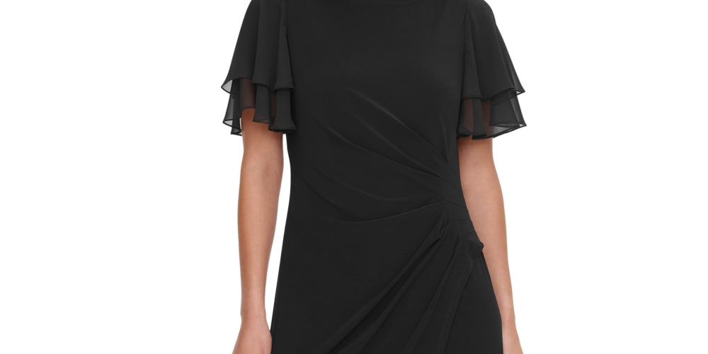Mangas leves e arejadas de chiffon dão um toque de leveza a este vestido tubinho pequeno da Jessica Howard. | Zíper traseiro oculto com fecho de colchete | Decote redondo; Modelo tubinho | Importado | Mangas borboleta em camadas de chiffon | Detalhe franzido na lateral