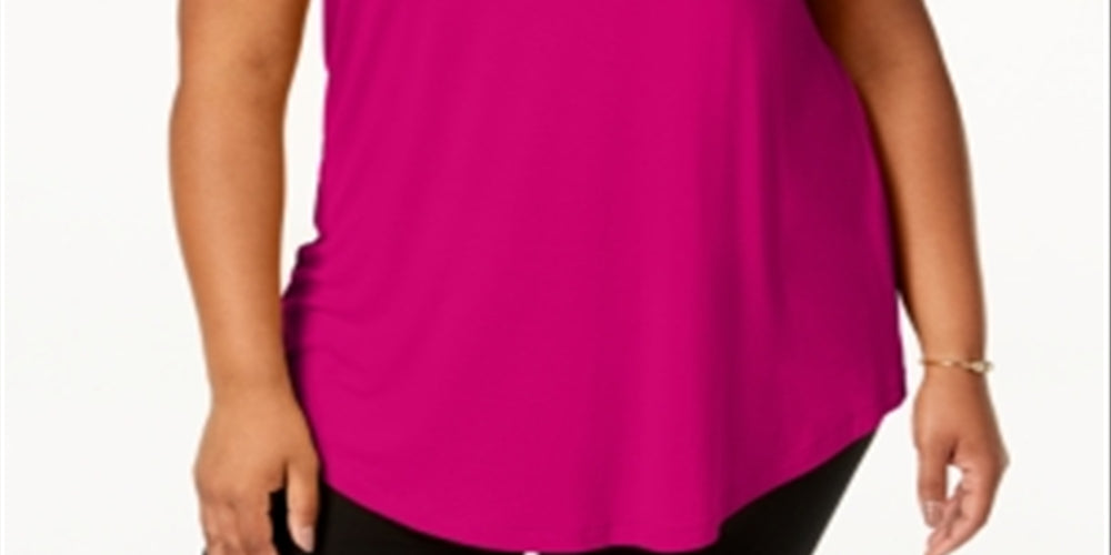 Camiseta feminina JM Collection com gola redonda elástica, rosa, tamanho 3X