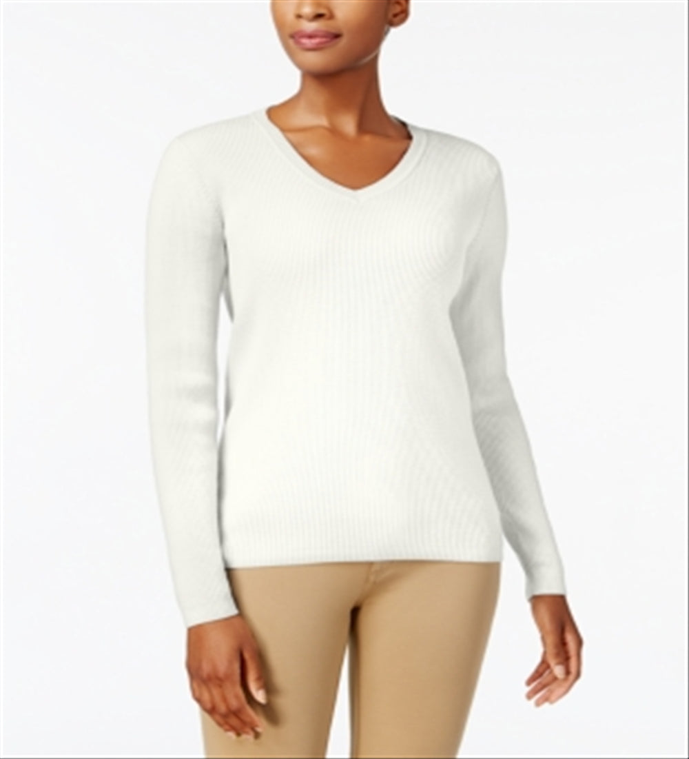 Karen Scott Suéter feminino de algodão com decote em V, branco, tamanho XX-G