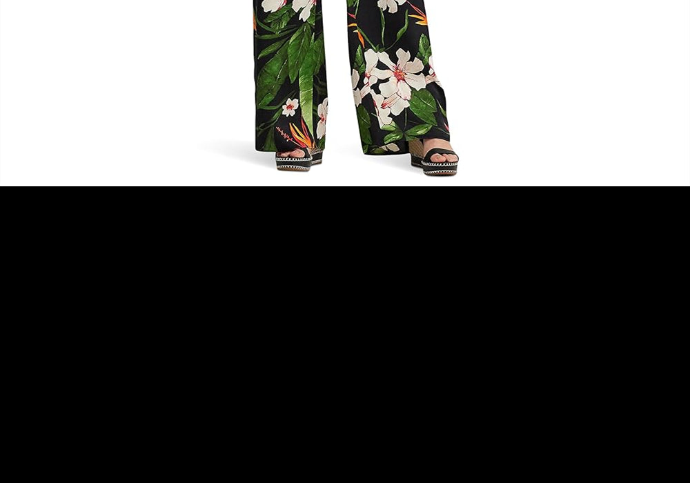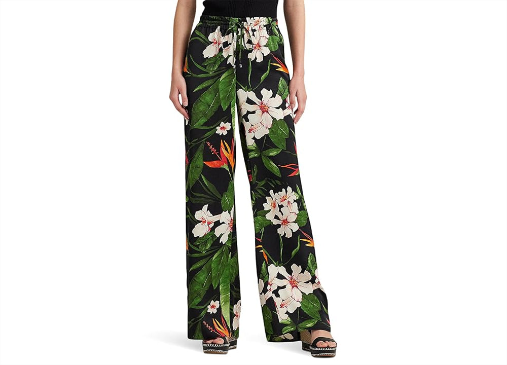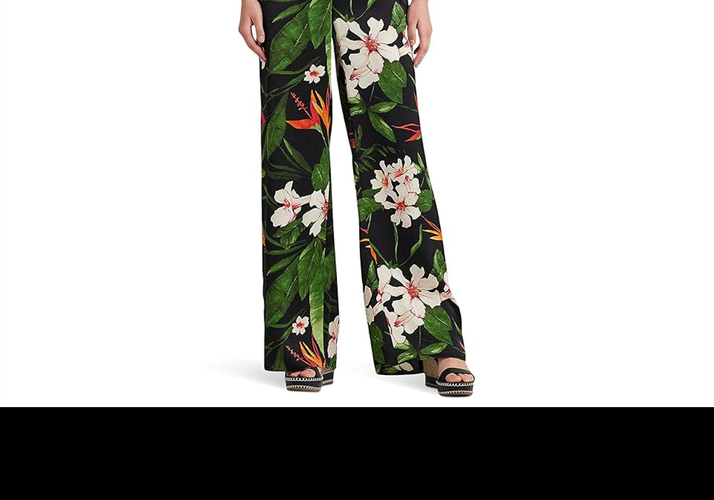Os materiais primários que compõem este produto contêm no mínimo 20% de conteúdo reciclado | ; Adicione um pouco de brilho e charme ao seu visual para um dia ensolarado combinando com as calças largas LAUREN Ralph Lauren Floral Satin Charmeuse | Feitas para arrasar | estas calças vêm equipadas com cós elástico com cordão para um ajuste ajustável e são adornadas com estampa floral para um toque marcante | Dois bolsos frontais em ângulo na cintura | Pontas do cordão com logotipo gravado | 60% poliéster reciclado