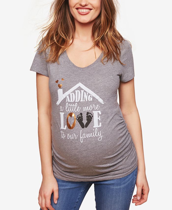 Com uma mensagem adorável | esta camiseta de maternidade "Adding A Little More Love To Our Family™" é uma adição divertida ao seu guarda-roupa de fim de semana. | Importado | Blusa de maternidade | Decote redondo; estilo pulôver | | Fale com um estilista e receba conselhos gratuitos de especialistas online ou em lojas para o seu guarda-roupa