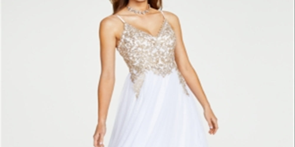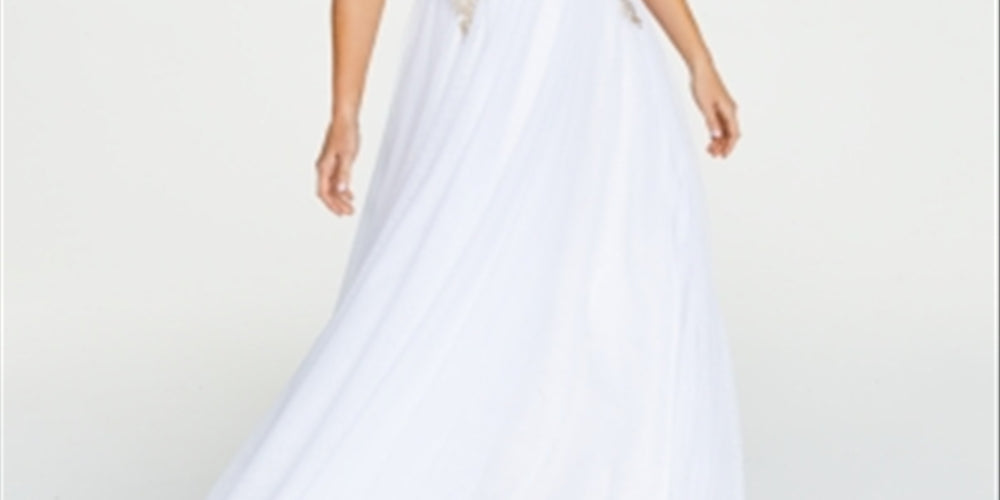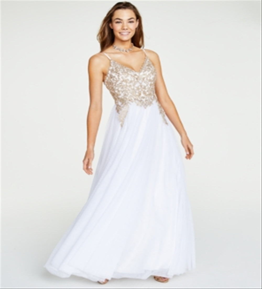 Vestido formal feminino Say Yes To The Prom, com alças finas transparentes, decote coração, comprimento total, branco, tamanho 13