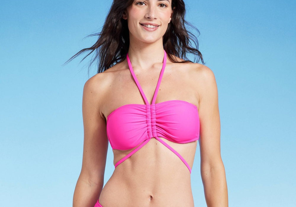 Top de biquíni feminino estilo bandeau com alças e alças finas (rosa | P)