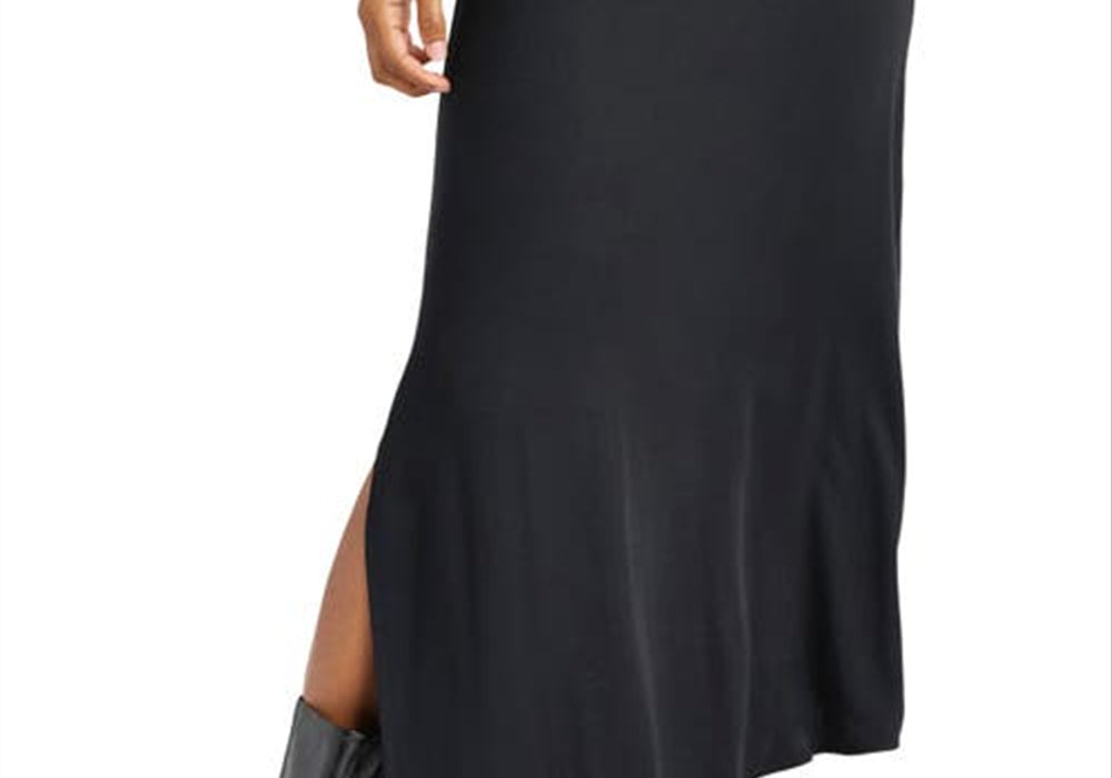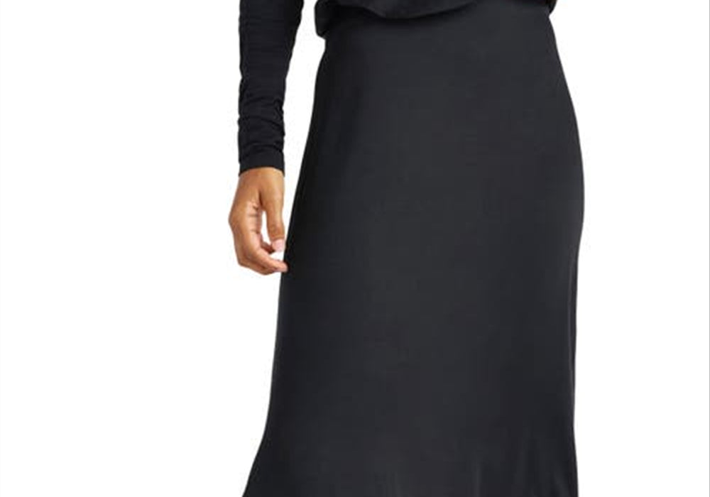 Saia longa assimétrica Chelsea com abertura lateral, tamanho grande, preta