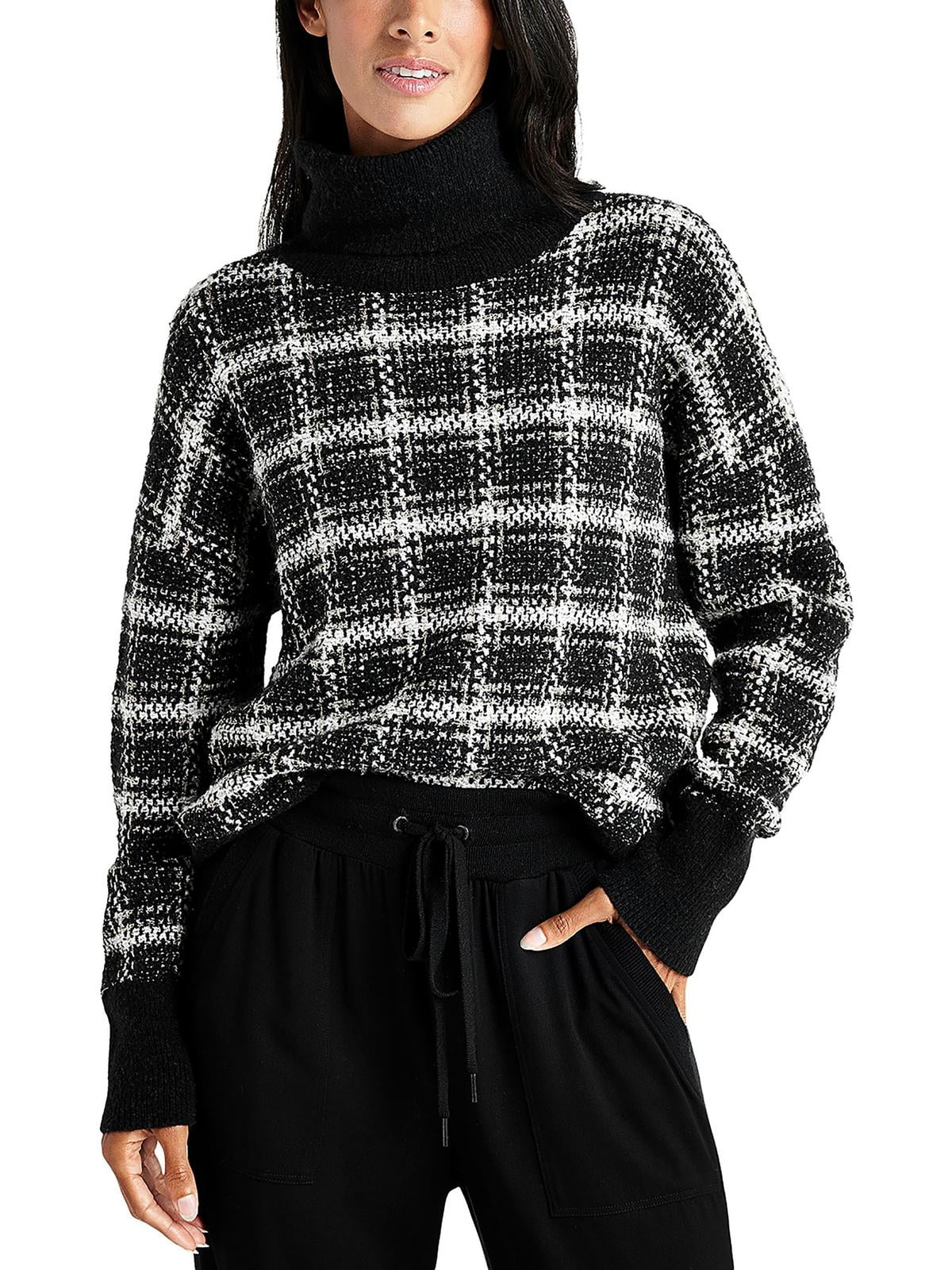 Suéter de gola alta xadrez Ginny esplêndido, preto, tamanho GG