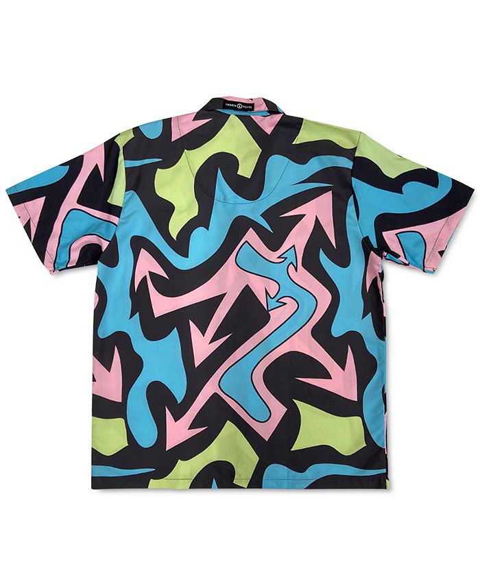 Uma arte de impressão por sublimação frontal e traseira confere um toque retrô e descolado a esta camisa cabana Dazed do TANGO HOTEL. | Caimento clássico | Gola camp | Bolso de aplicação no peito esquerdo | Poliéster | Lavável à máquina