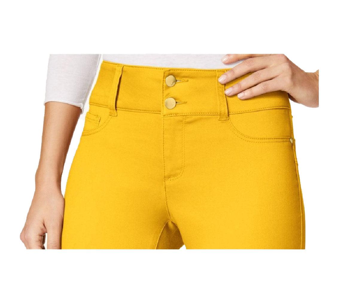 Calça skinny feminina Thalia Sodi com dois botões, amarela, tamanho 6