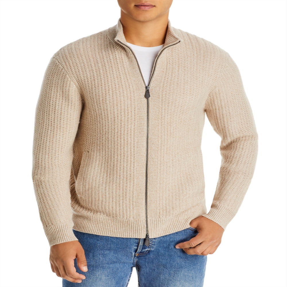 Suéter texturizado de lã e caxemira com zíper e gola falsa da The Men's Store at Bloomingdale's - Exclusivo
