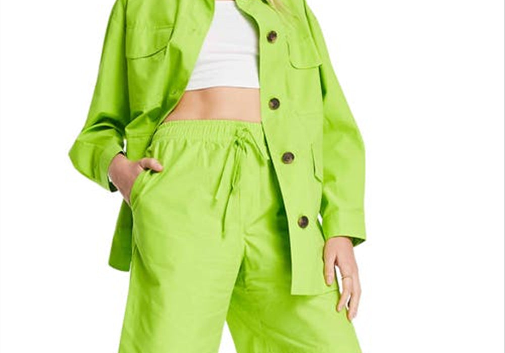 Cor verde claro | Tamanho 2 EUA | Design de cintura alta | Cintura com cordão ajustável | Caimento relaxado | Fabricado pela Topshop | Vendido na Nordstrom | Material respirável | Bolsos para conveniência | Estilo casual