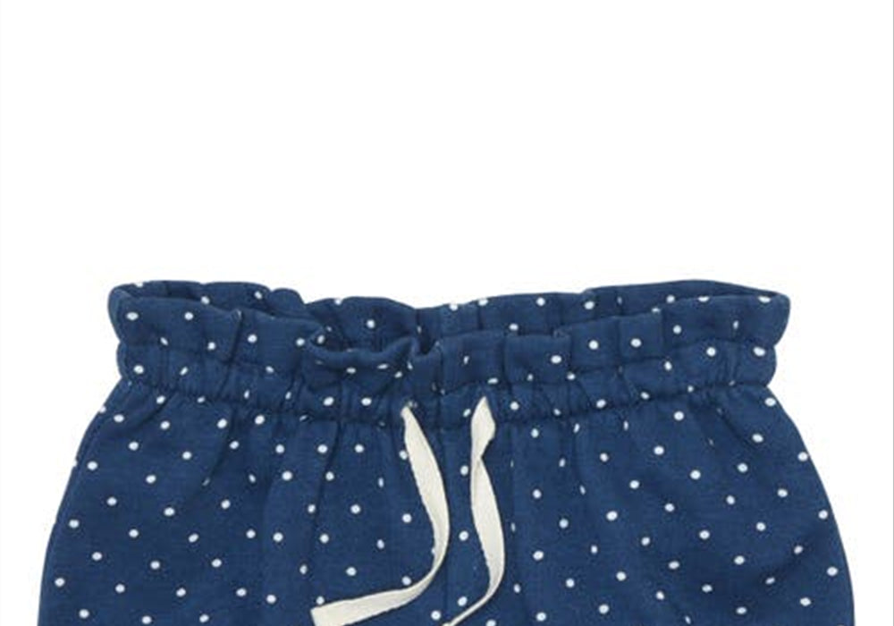 Material de algodão confortável | Design chique com mini bolinhas | Detalhes estilosos de babados | Jeans azul-marinho versátil | Adequado para tamanho 9M | Cintura elástica fácil de usar | Durável para uso diário | Disponível na Nordstrom