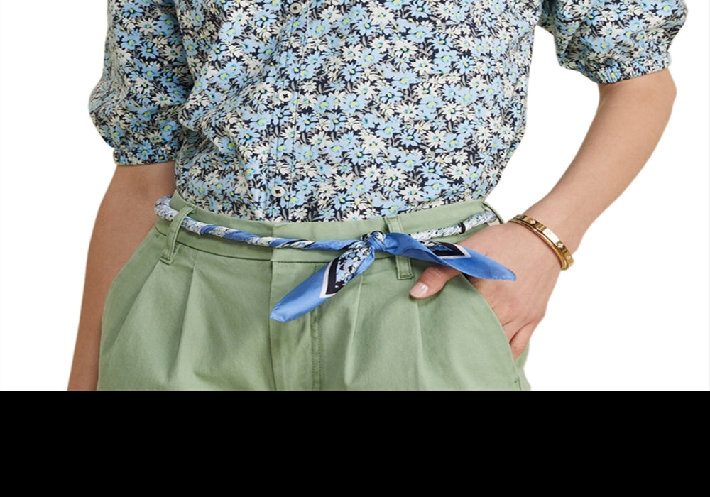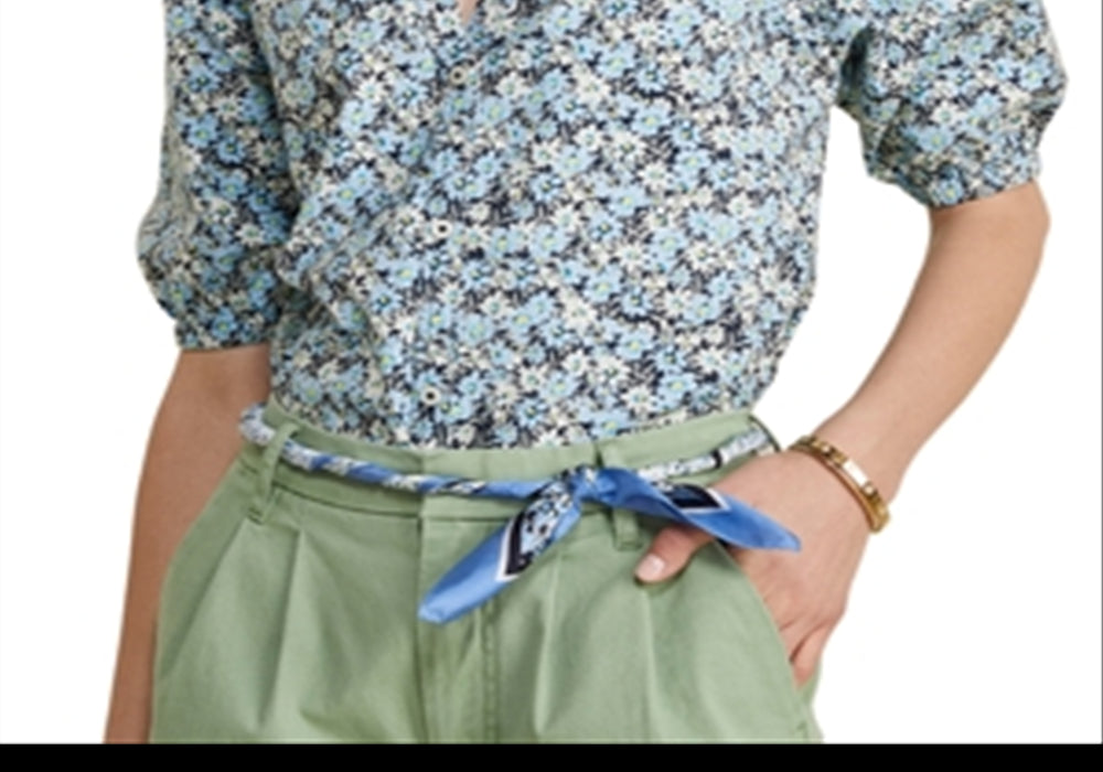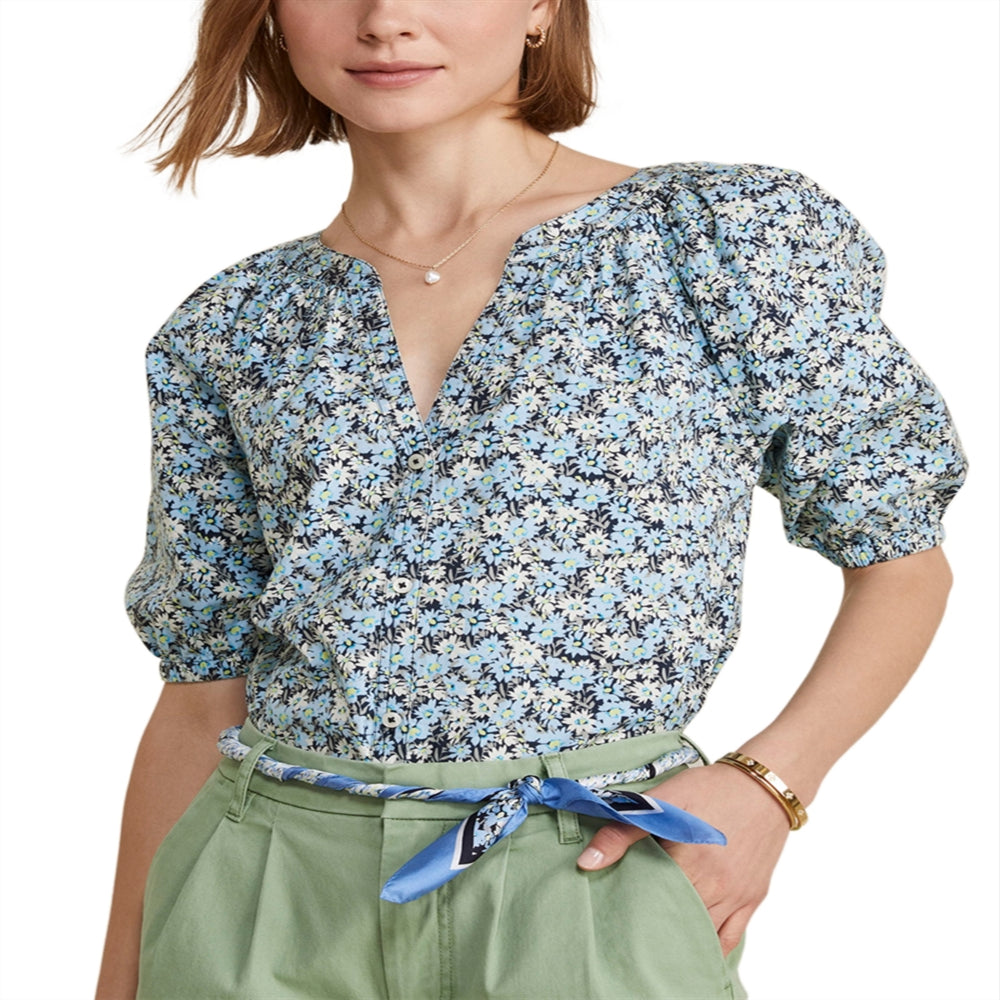 Blusa Vineyard Vines com manga bufante e botões na frente | Cor: Azul marinho floral | Tamanho: M | Material: 98% algodão/2% elastano | Blusas