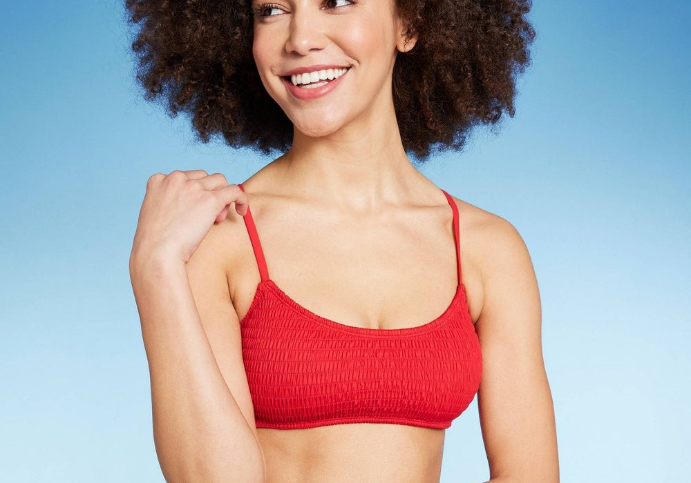 Cor vermelha chique | Design franzido | Top estilo biquíni | Tamanho médio | Marca Wild Fable™ | Corte bralette moderno | Alças ajustáveis ​​| Material elástico confortável | Construção durável | Roupa de praia estilosa