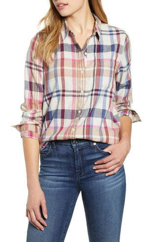 Camisa xadrez feminina clássica Lucky Brand com um bolso, azul, tamanho extra pequeno