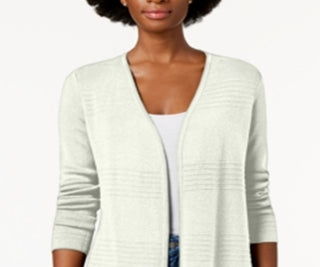 Cardigan feminino de malha canelada com frente aberta, tamanho extragrande, branco, Charter Club