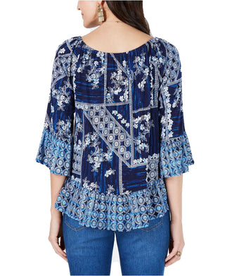 Blusa feminina estampada ombro a ombro estilo & co, azul, tamanho pequeno