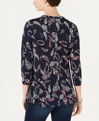 Camisa feminina com estampa Paisley Charter Club, azul, tamanho pequeno