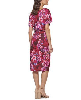 Vestido midi de crepe feminino Kensie, rosa, tamanho extrapequeno