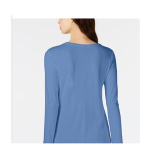 Blusa feminina Maison Jules com decote redondo, azul, tamanho XX-G