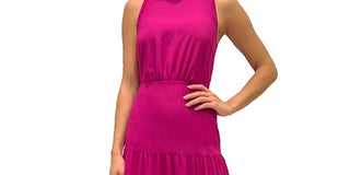 Vestido feminino de chiffon sem mangas e gola alta Sam Edelman, rosa, tamanho 12