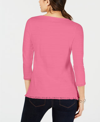 Top feminino Charter Club com acabamento em renda de algodão rosa, tamanho extragrande
