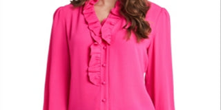 Blusa feminina Piper com babados, rosa, tamanho médio, da Riley & Rae