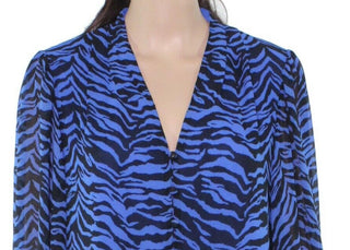Blusa feminina Vince Camuto Animal Impression com manga curta, azul, tamanho médio