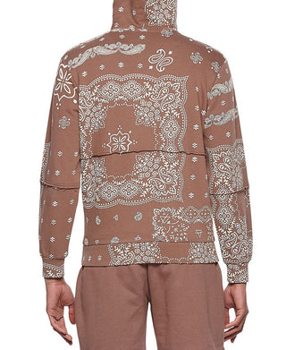 Moletom com capuz masculino Eleven Paris com estampa Paisley e zíper, marrom, tamanho XX-G