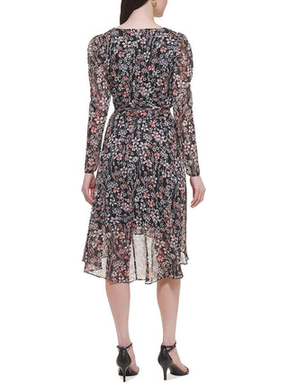 Vestido midi metálico de chiffon feminino Tommy Hilfiger, preto, tamanho 14