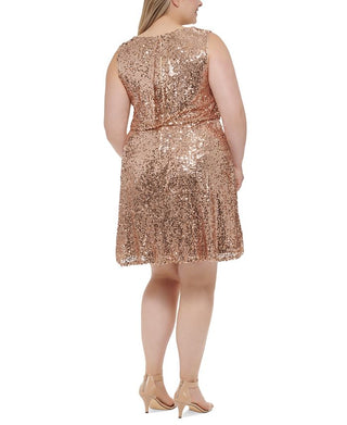 Vestido feminino Vince Camuto com lantejoulas, sem mangas, decote em V, marrom, tamanho 22W