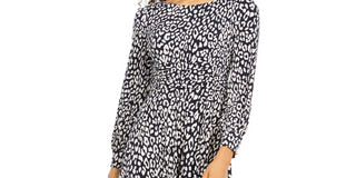 Vestido feminino Jessica Howard com estampa animal evasê, azul, tamanho 8, pequeno