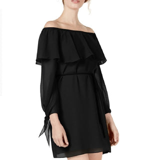 Vestido feminino Maison Jules com babados e ombros à mostra, preto, tamanho extrapequeno