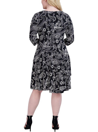 Vestido feminino Robbie Bee com decote em V e manga 3/4, evasê, preto, tamanho 2X