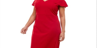 Vestido midi feminino com ombros descobertos e estampa Emerald Sundae, vermelho, tamanho 20W