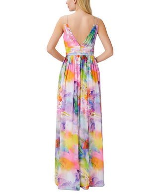 Vestido feminino de chiffon estampado com decote em V, tamanho 2, rosa, Aidan by Aidan Mattox