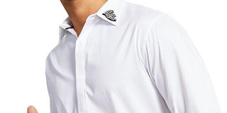 Camisa elástica com botões e detalhes embelezados da INC International Concepts para homens, branca, tamanho médio