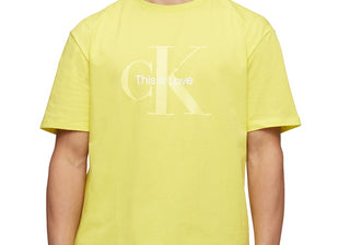 Camiseta Calvin Klein Masculina com Estampa de Logotipo Pride, Amarela, Tamanho P