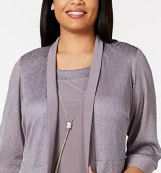 Vestido plus size e jaqueta metálica feminino R & M Richards, tamanho 20W, prateado