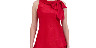 Vestido trapézio Robbie Bee feminino com decote em arco e bainha em camadas, vermelho, tamanho 6 pequeno