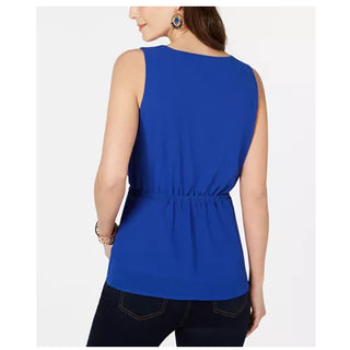 Thalia Sodi Top peplum sem mangas com decote em V feminino, azul, tamanho pequeno