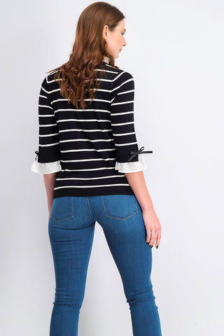 Suéter listrado com acabamento em laço Maison Jules feminino, preto, tamanho pequeno