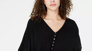 Blusa Henley de malha waffle aconchegante Ultra Flirt Juniors, preta, tamanho extra grande