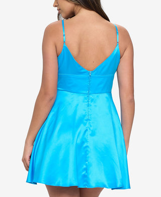 Vestido Corset A Line de Cetim B Darlin Junior Azul Tamanho 14